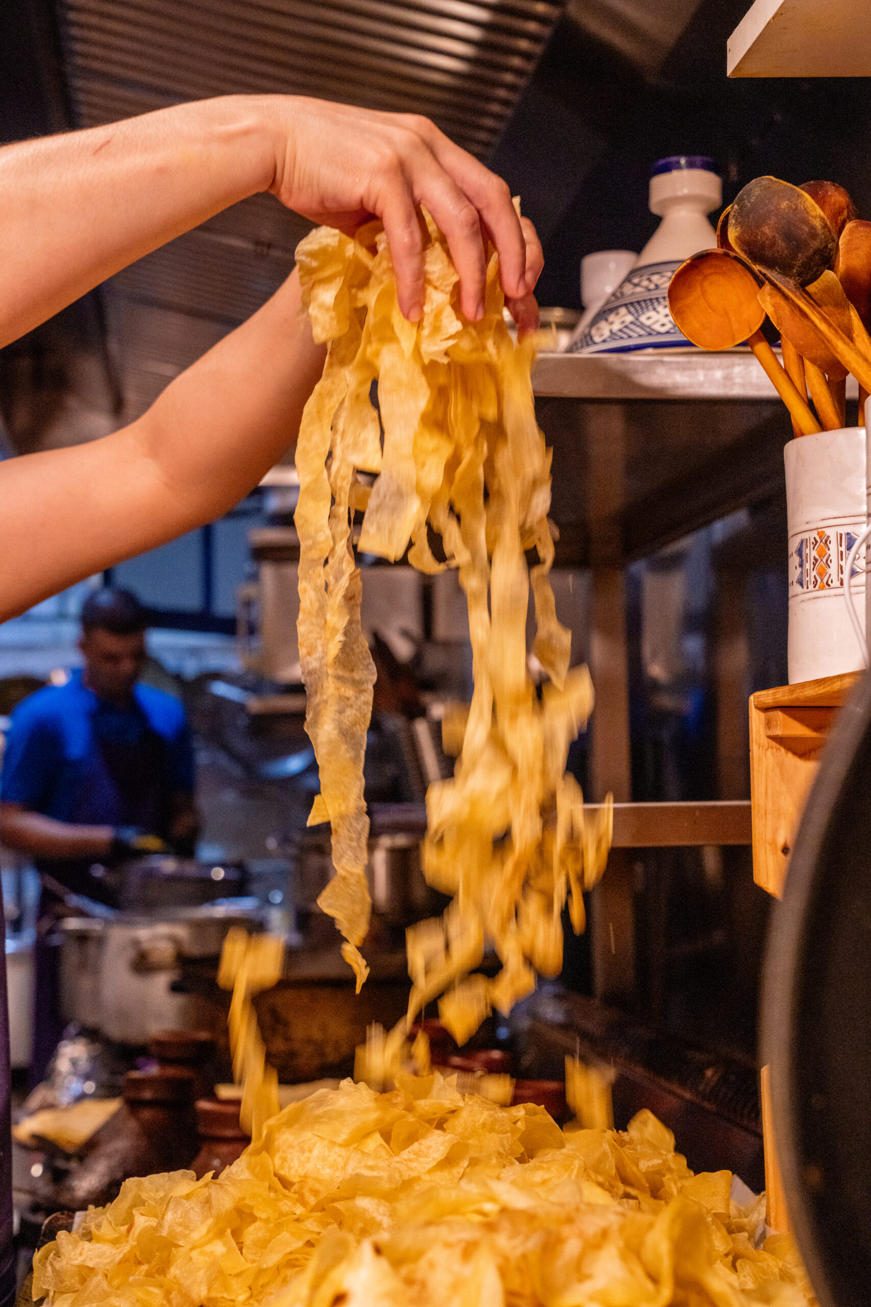Nos chefs façonnent chaque feuille à la main, héritage d’un savoir-faire ancestral pour des pastillas croustillantes et dorées à souhait.
